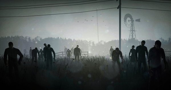 ![Город с зомби в тумане]()