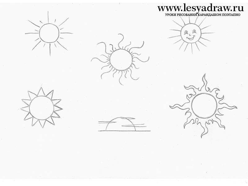 Рисунок солнца карандашом для срисовки