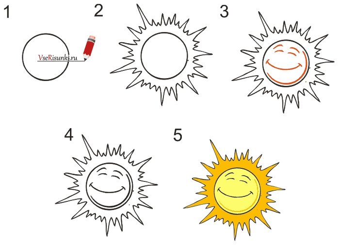 ![Рисование солнышко карандашом]()