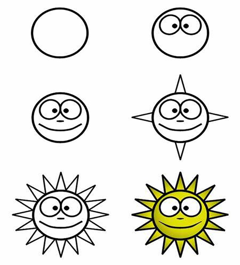 Рисование солнышко карандашом