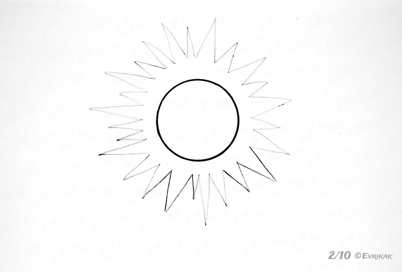 Нарисовать солнце карандашом