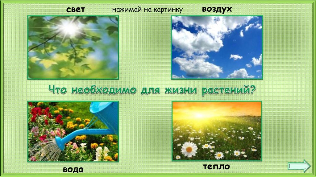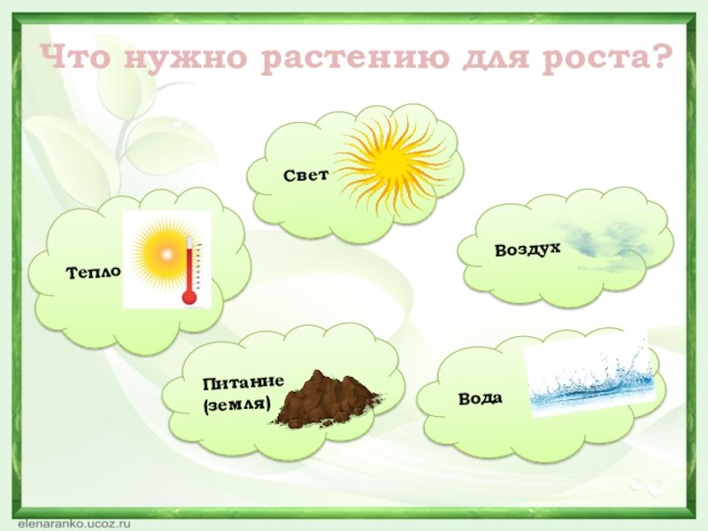 ![Условия, необходимые для жизни растения (свет, тепло, воздух, вода).]()