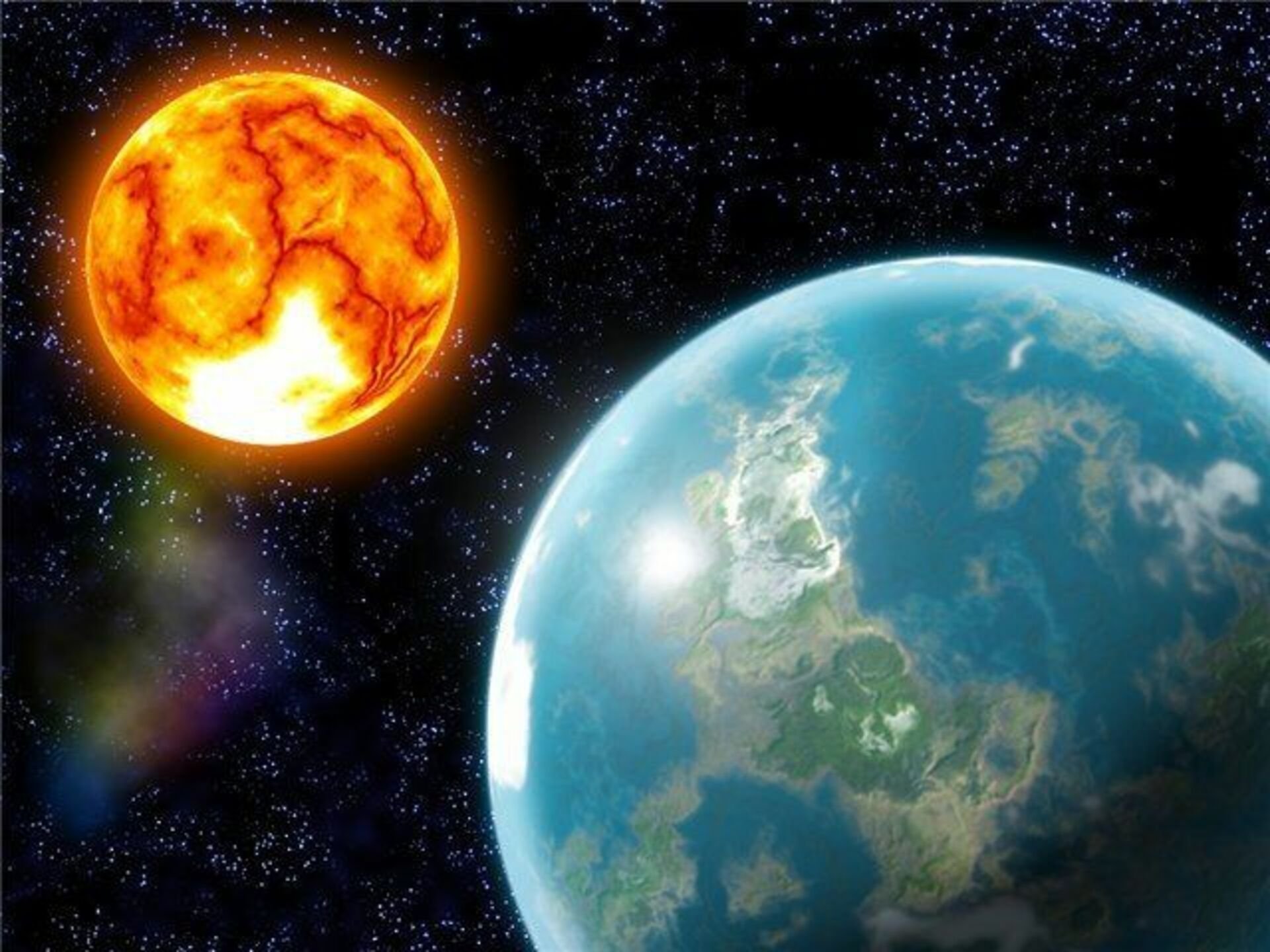 Планета земля и солнце