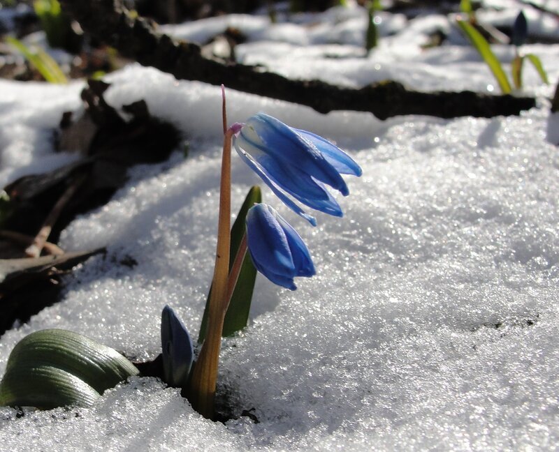 Первоцветы пролеска снег