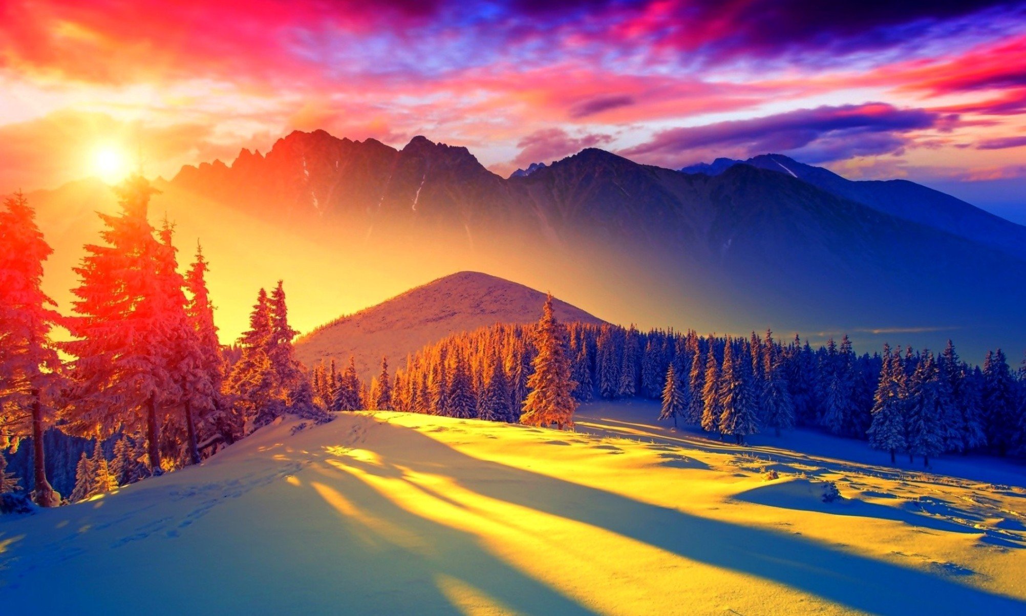 ![Рассвет в горах зимой]()