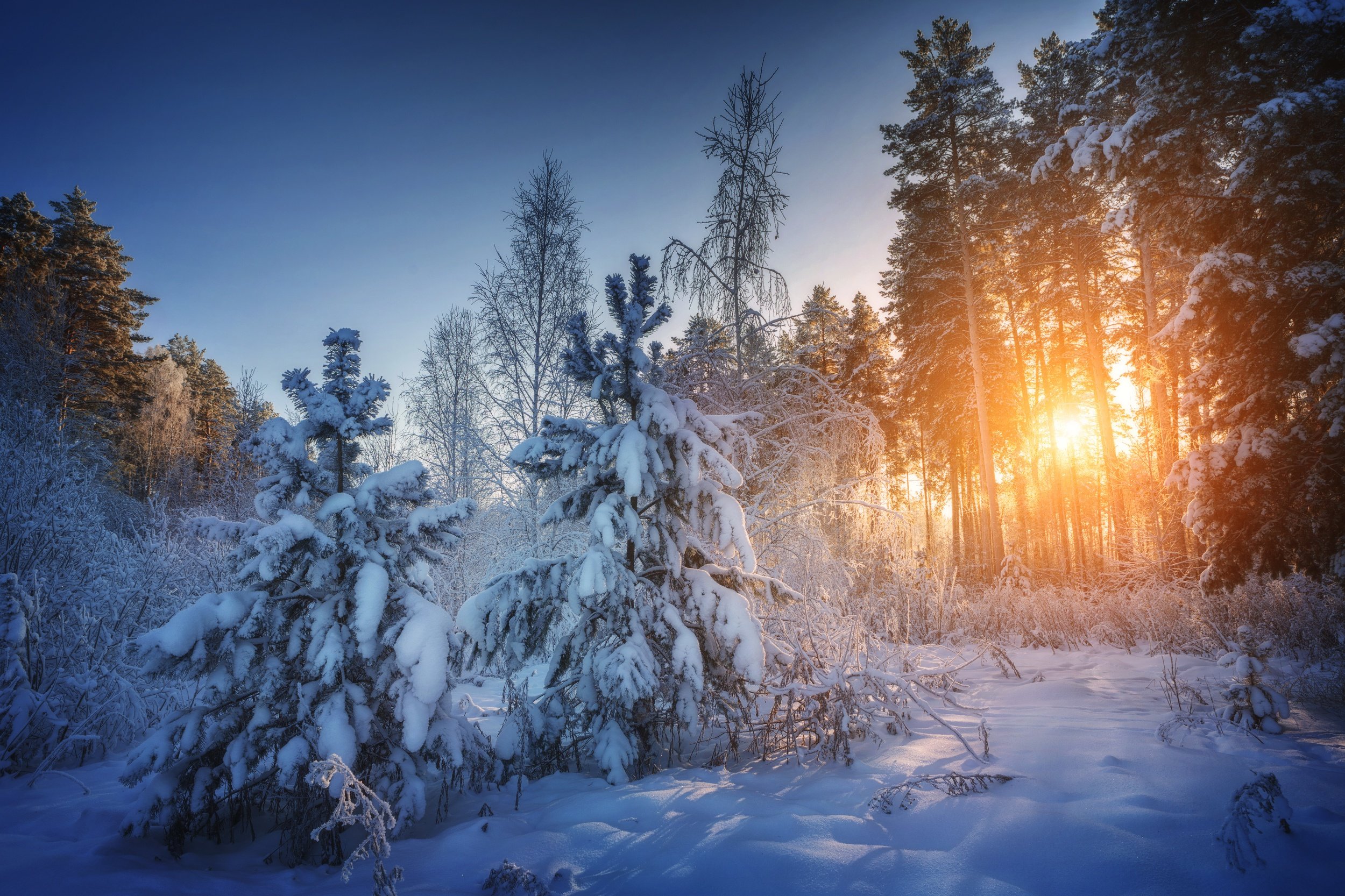 ![Зимний лес солнце]()