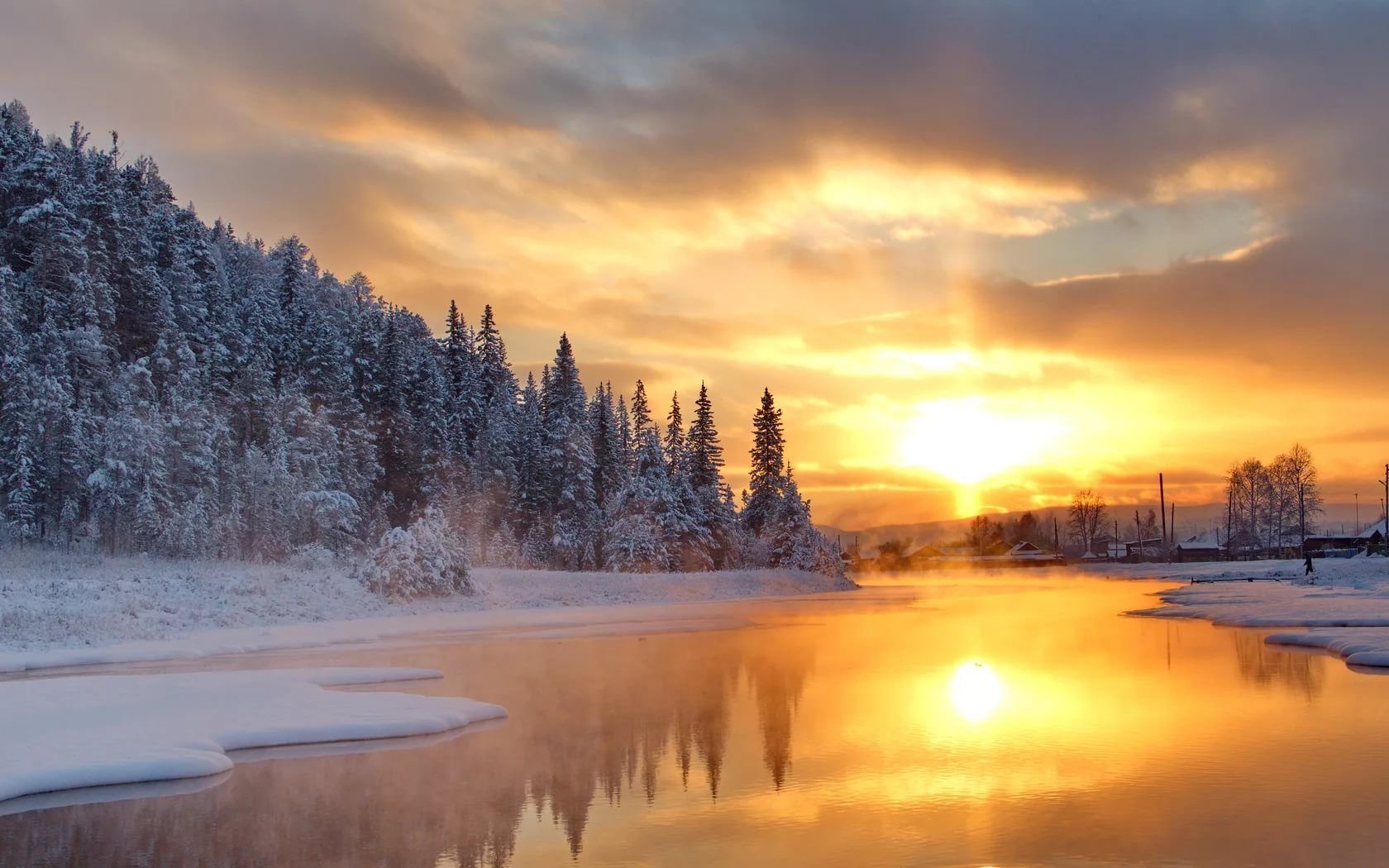 ![Зима река солнце]()