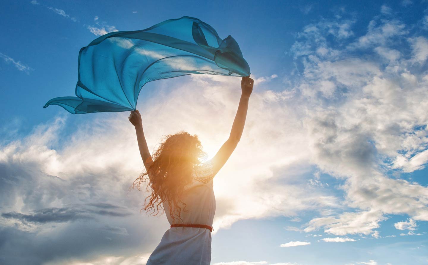 Девушка тянется к солнцу
