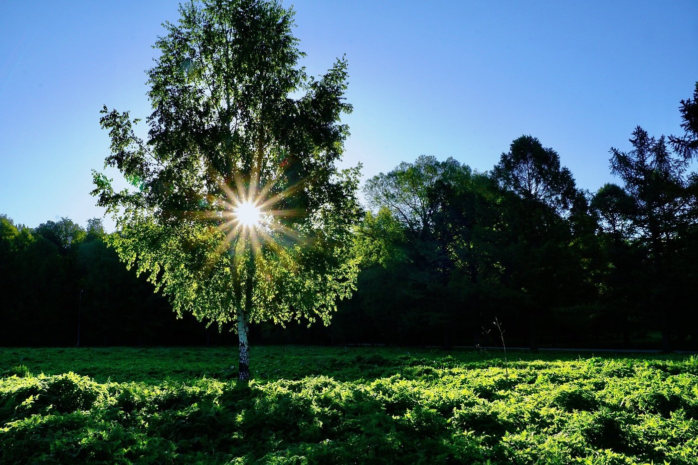 Береза в лучах солнца