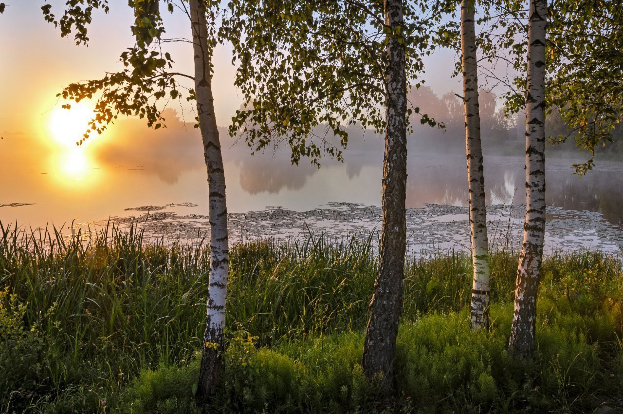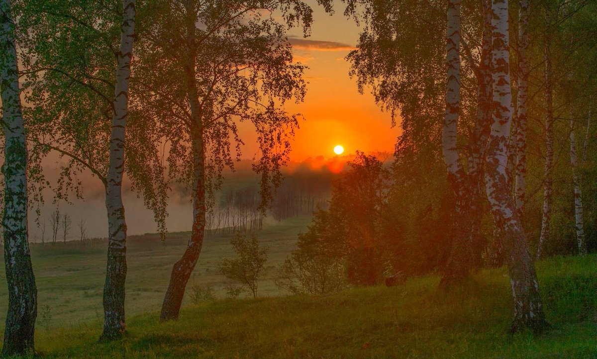 Рассвет в березовой роще