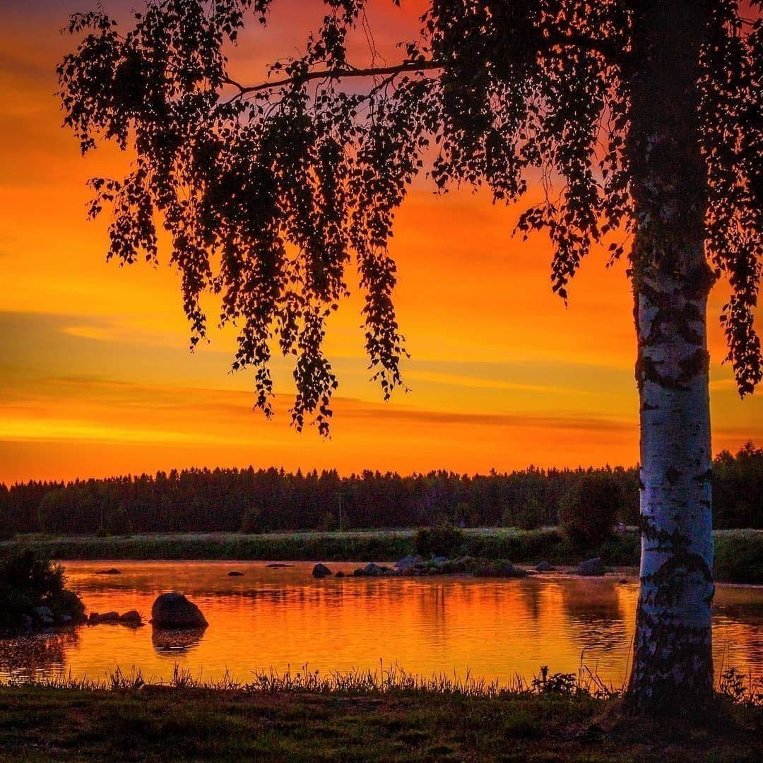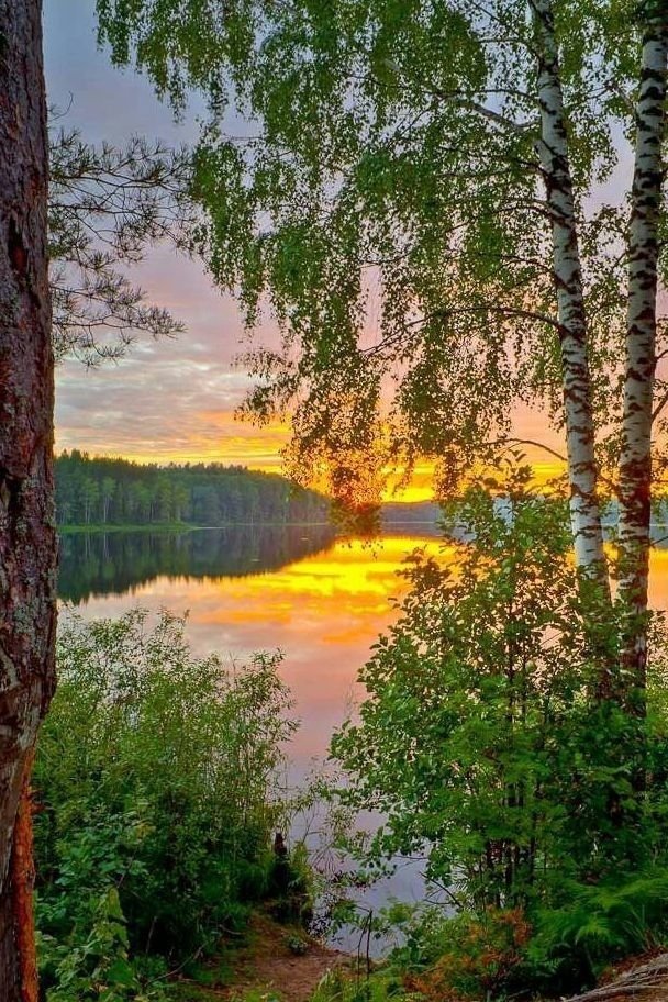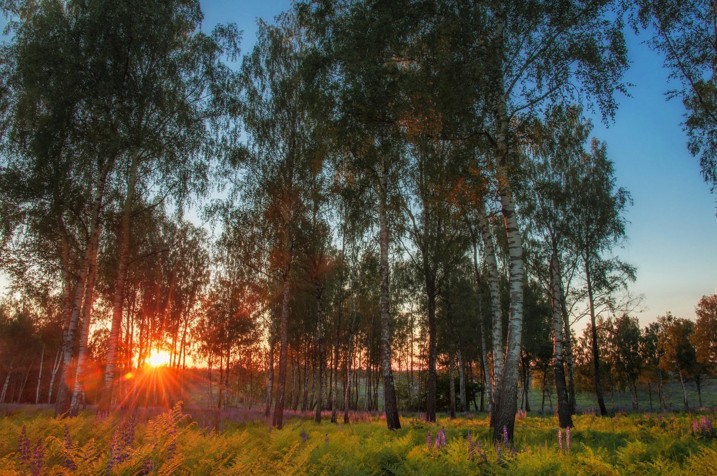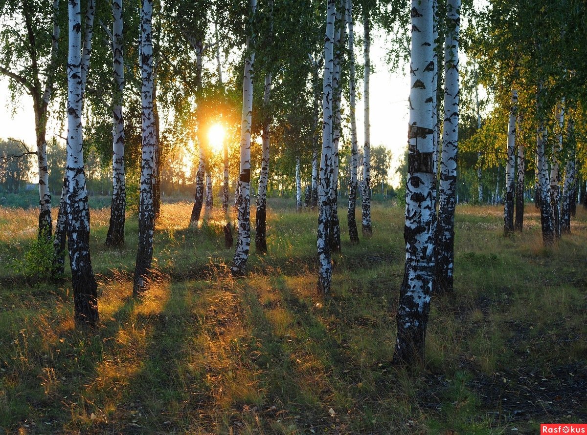 Берёзовая роща вечер березы закат
