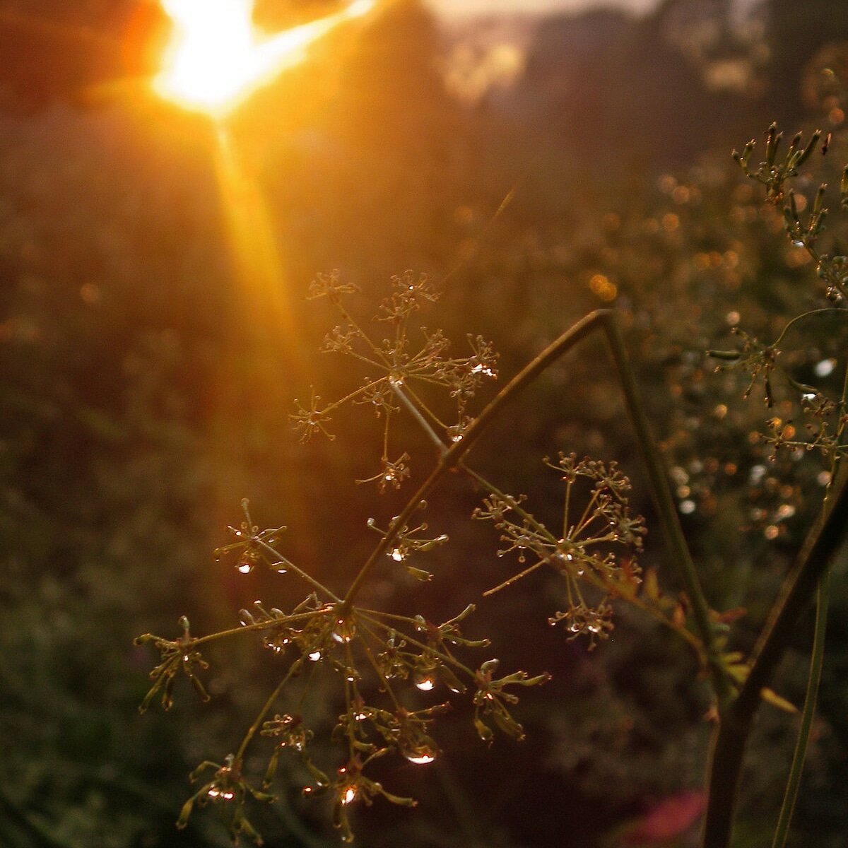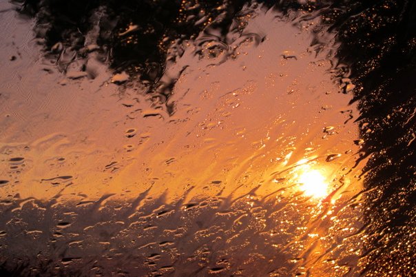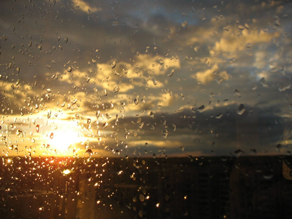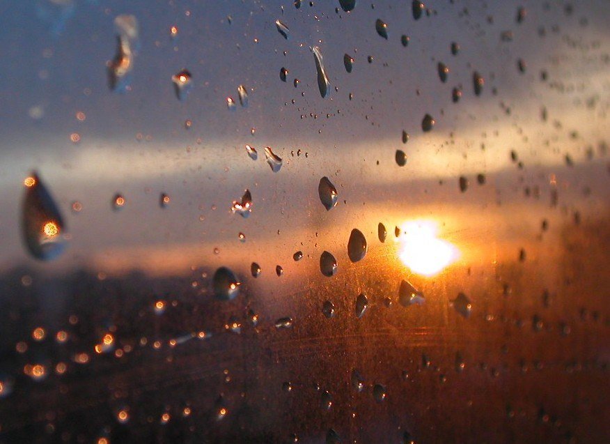 Капли дождя на закате