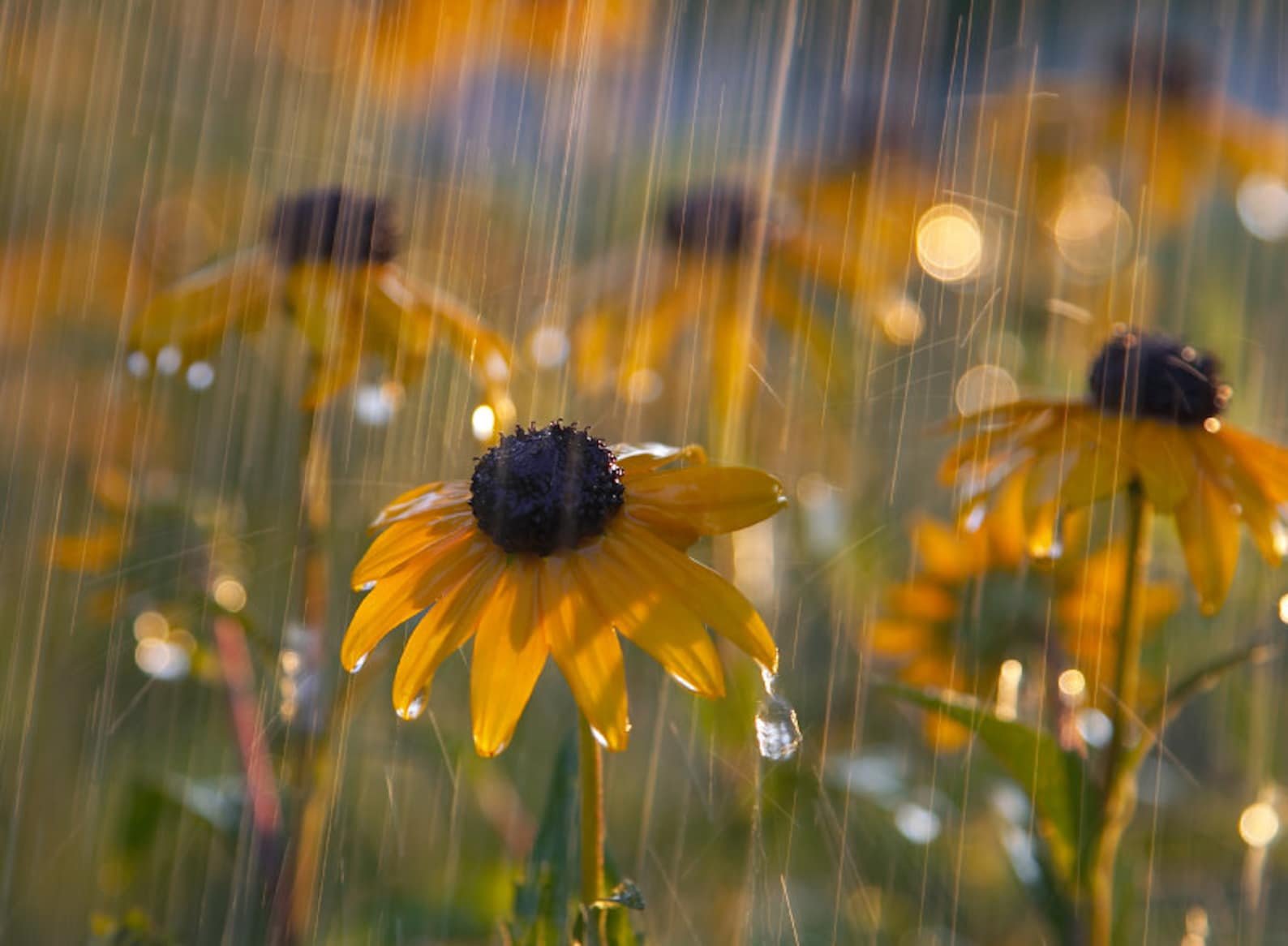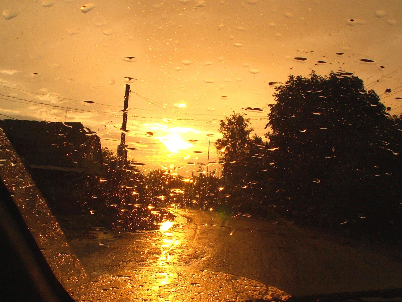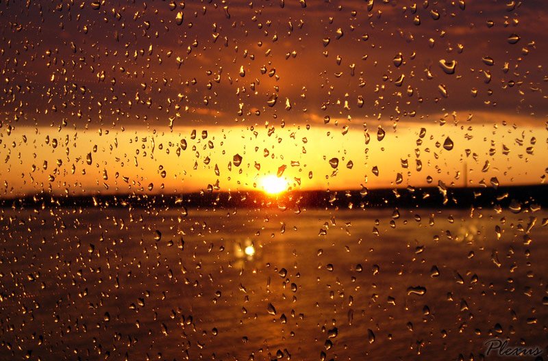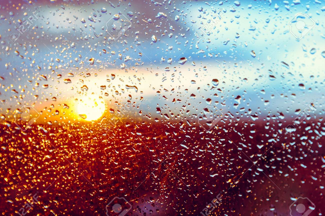 ![Капли дождя на закате]()