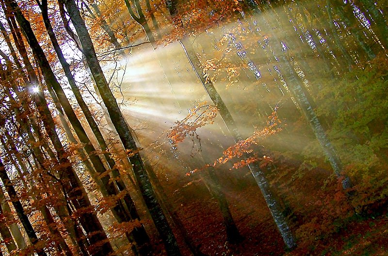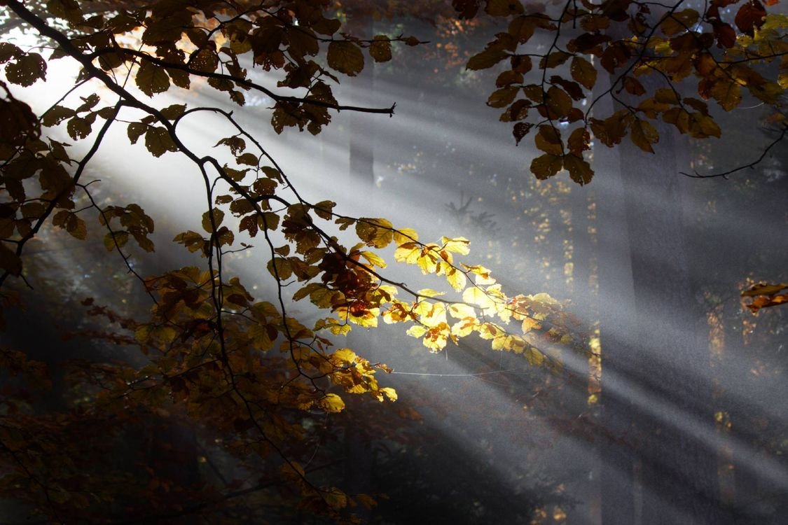 ![Лучи солнца сквозь листву]()