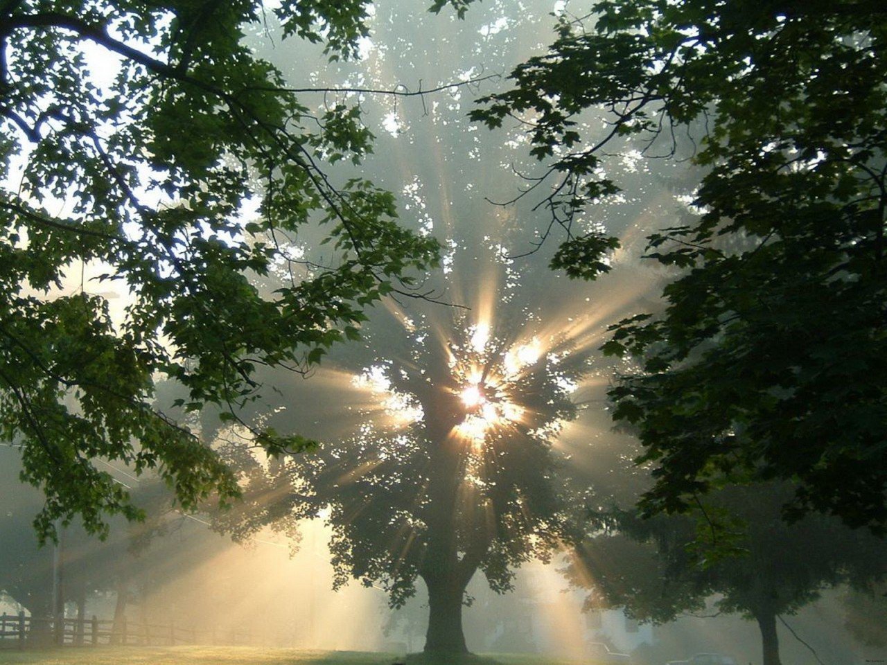 ![Солнце сквозь деревья]()