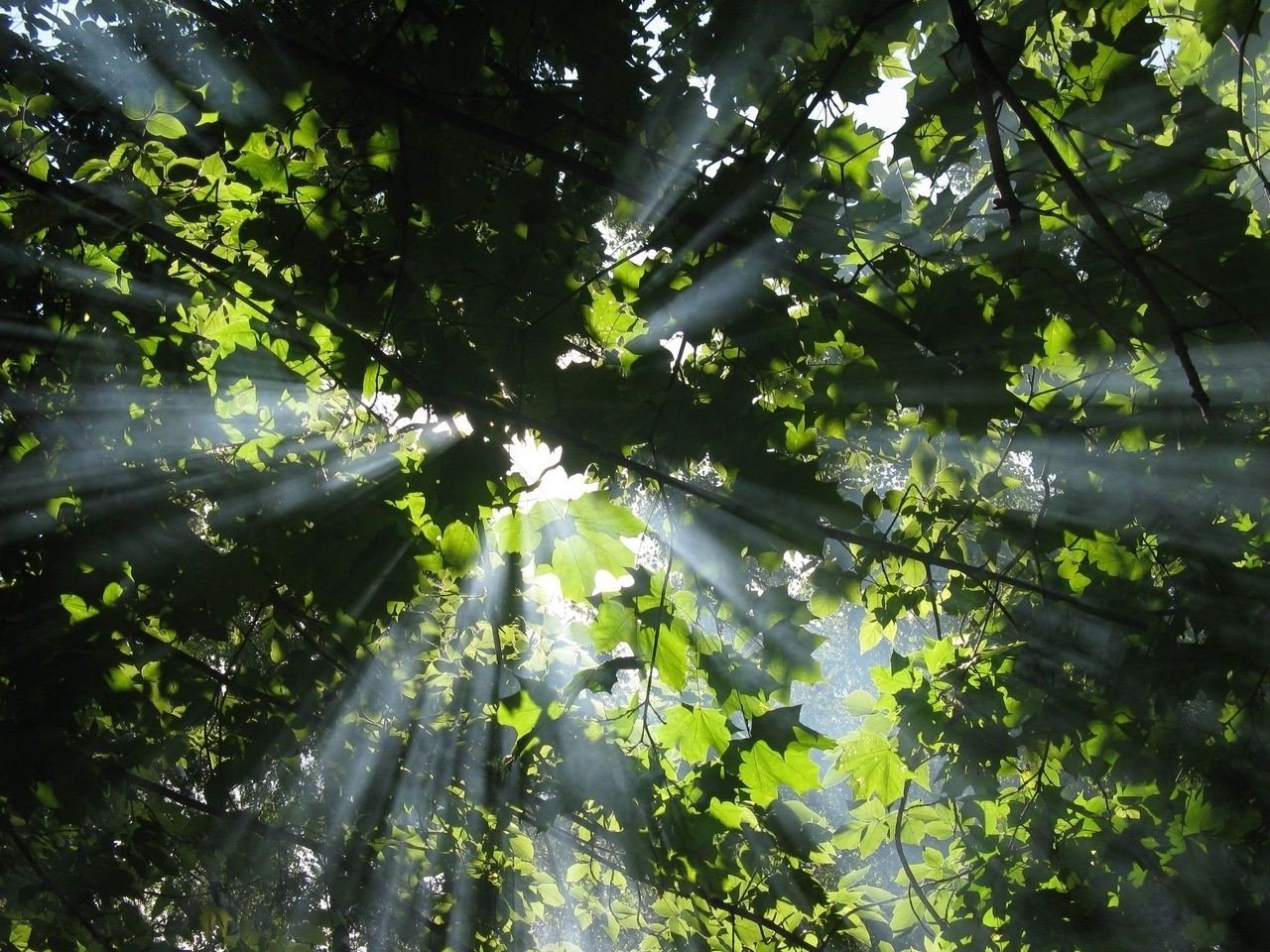 Солнечные лучи сквозь листву
