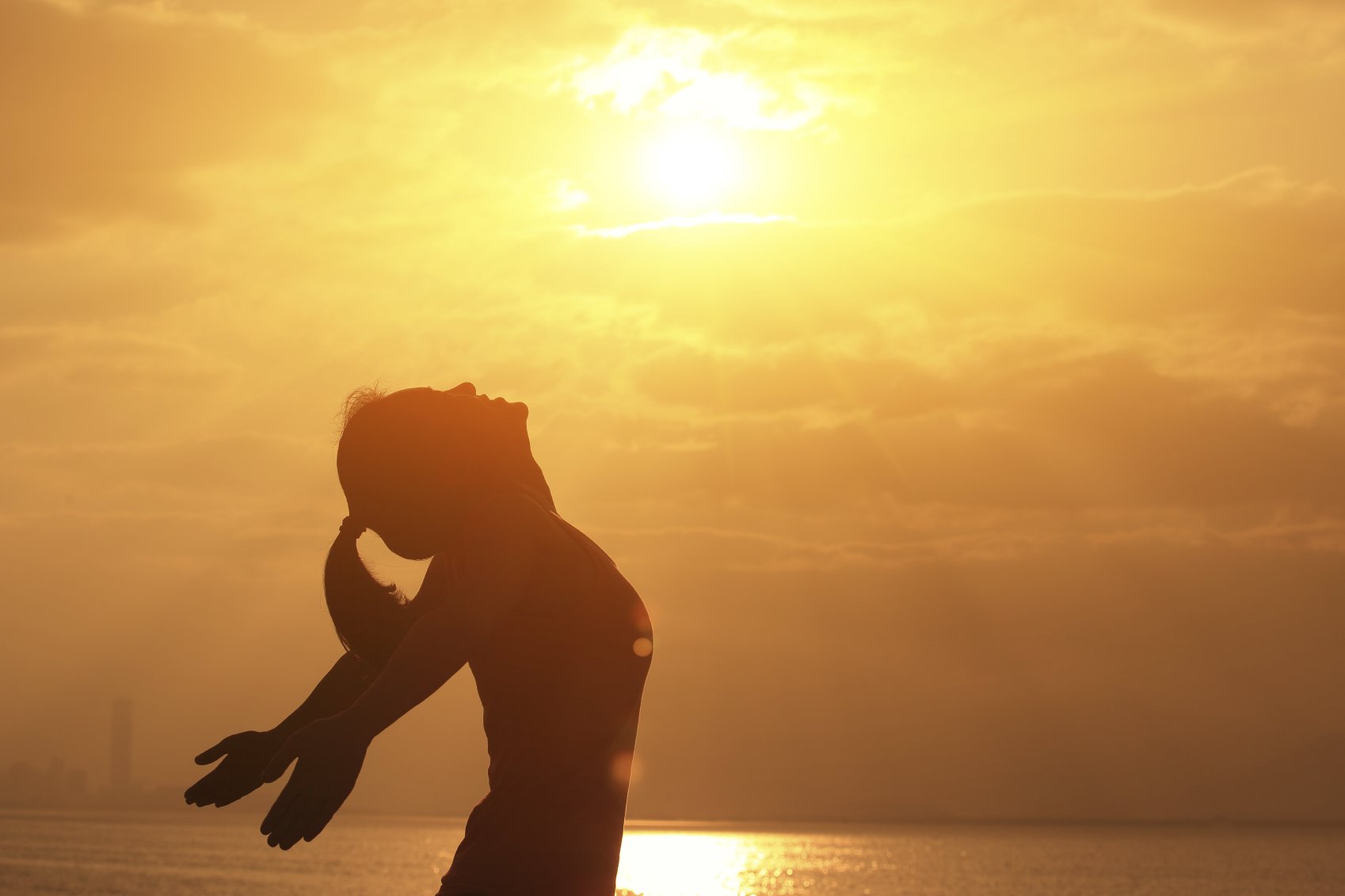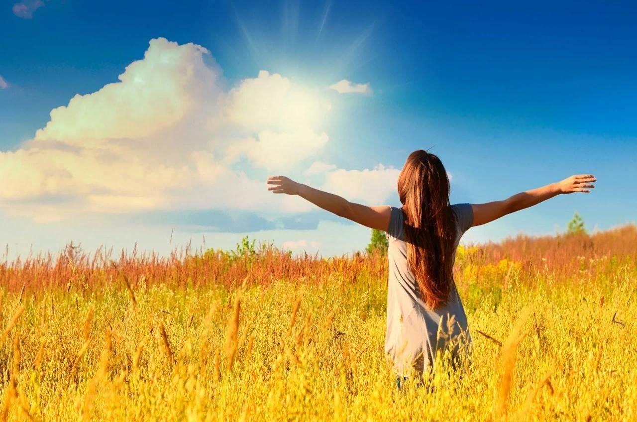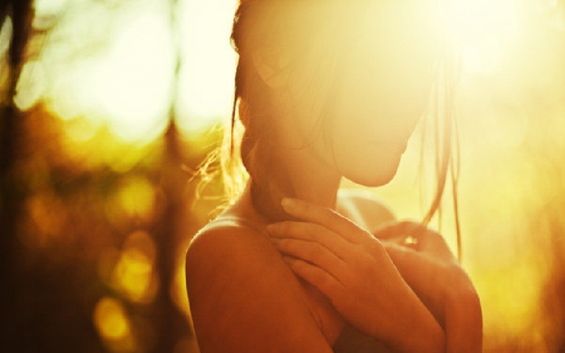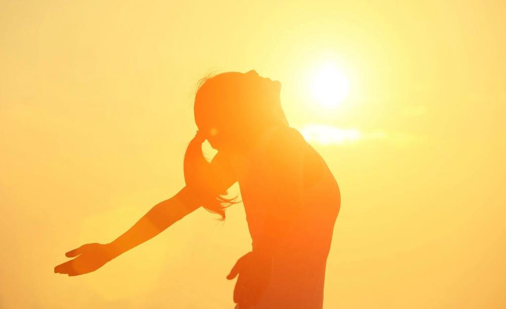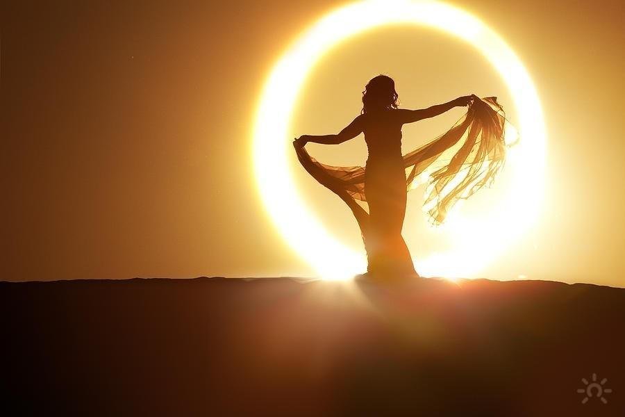 Девушка обнимает солнце