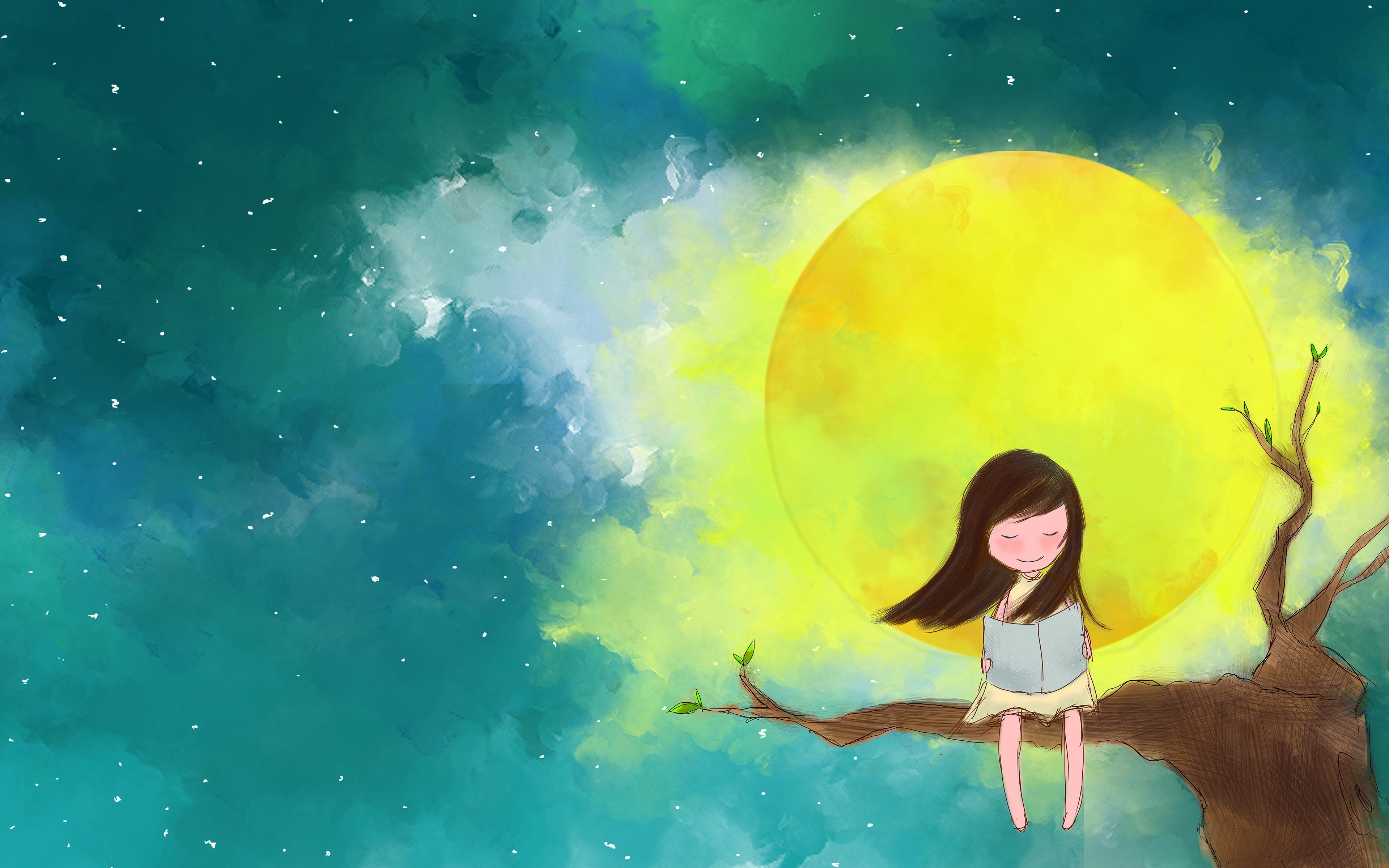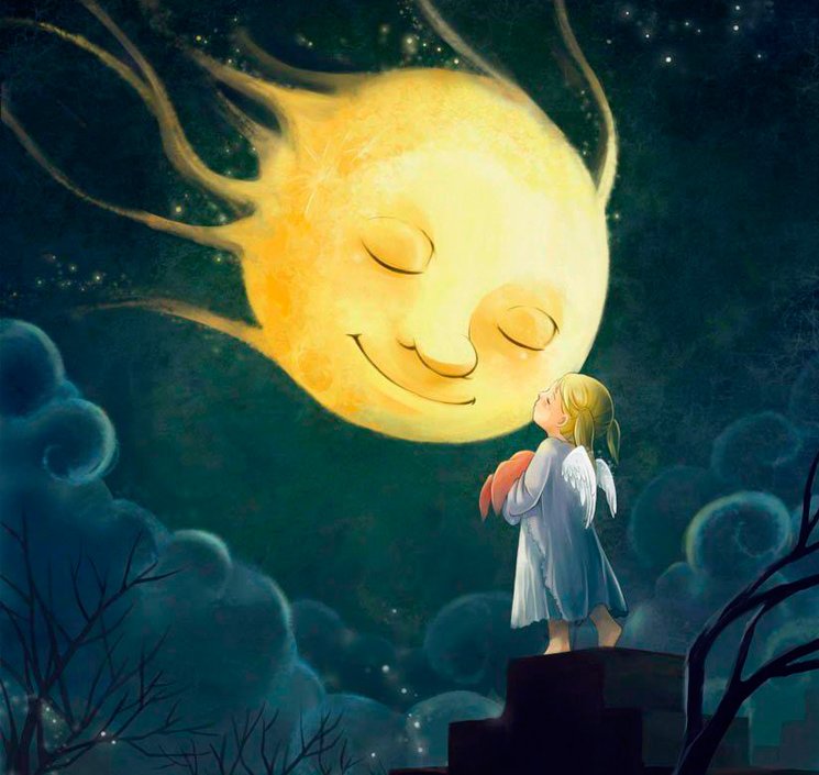 Девушка обнимает луну