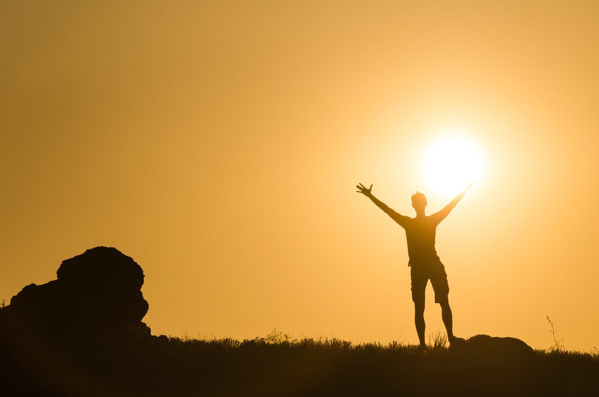 Человек обнимает солнце