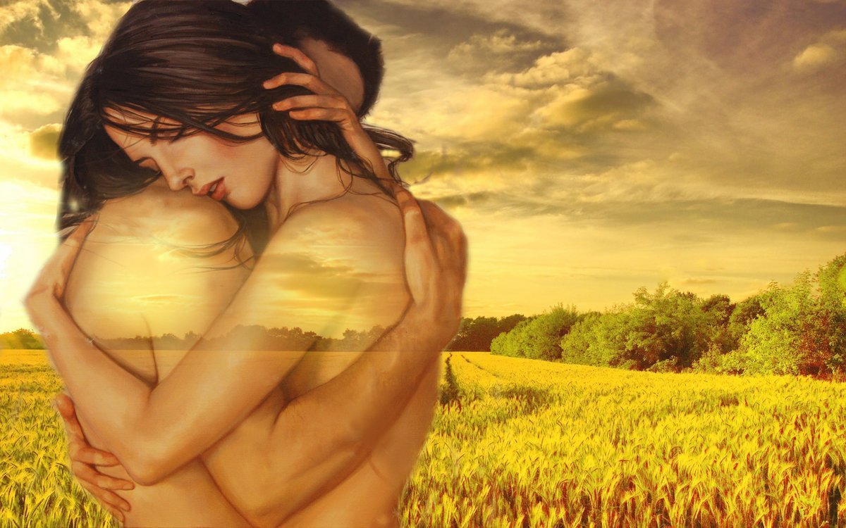 Мужчина и женщина в лучах солнца
