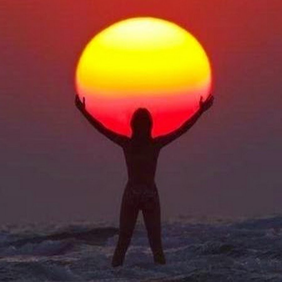 Человек держит солнце