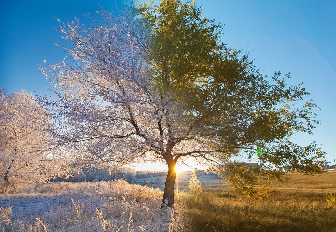 Дерево зимой и летом