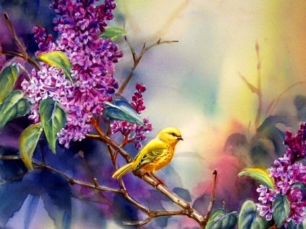 Птицы цветы солнце