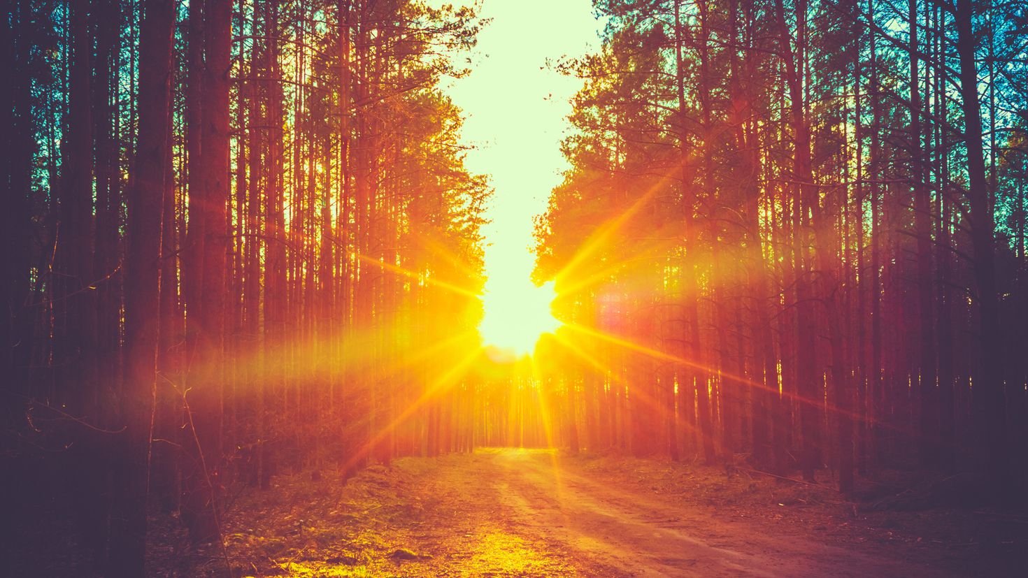 Красивый закат в лесу