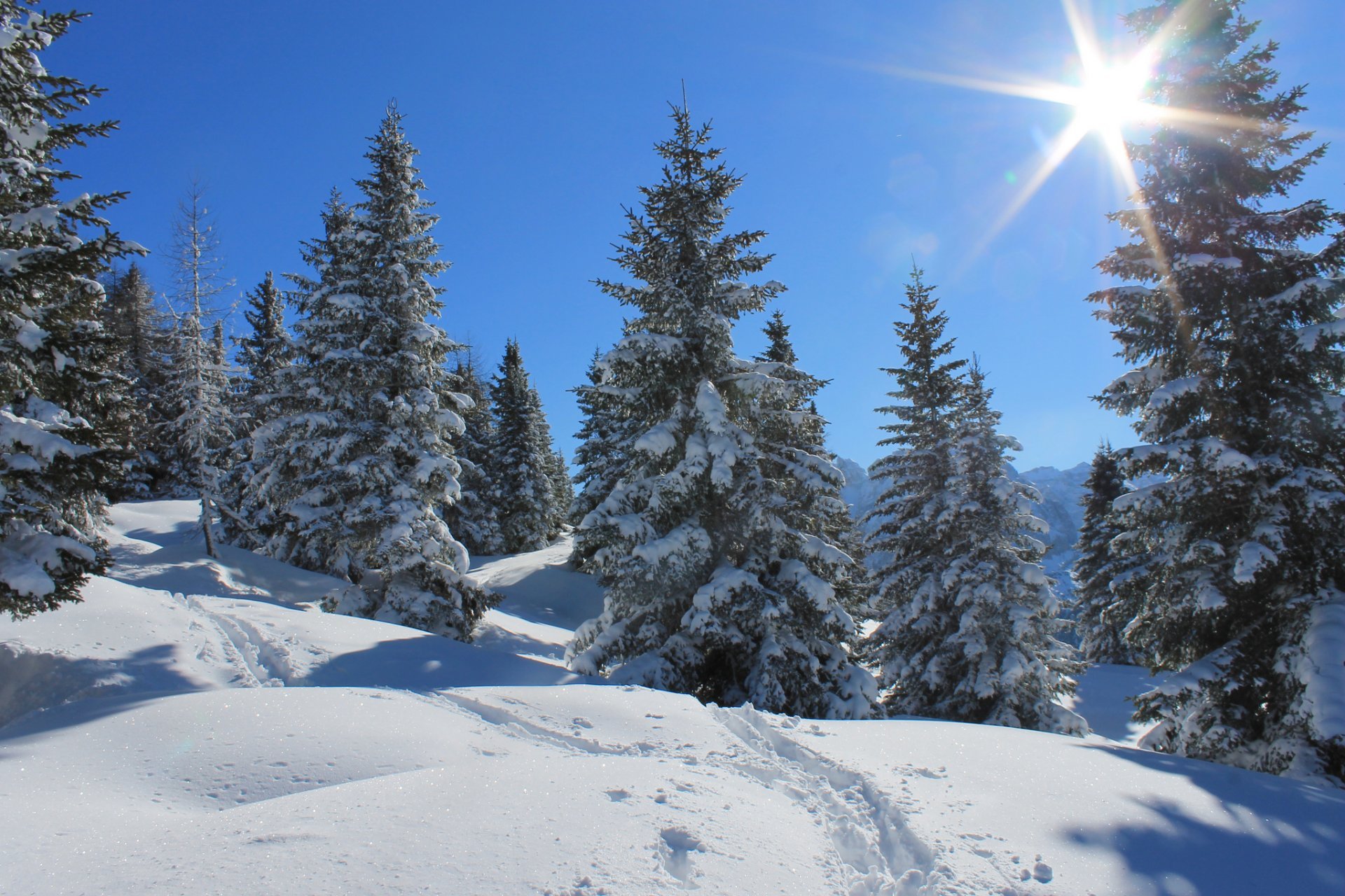 Ослепительное солнце на снегу