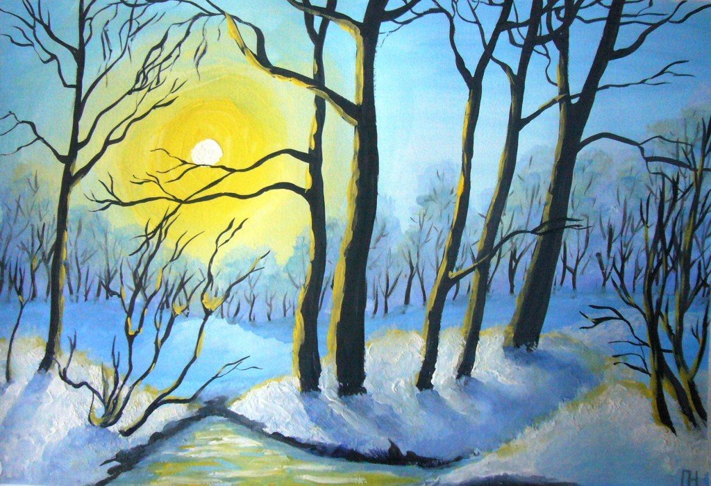 Рисование зимний пейзаж