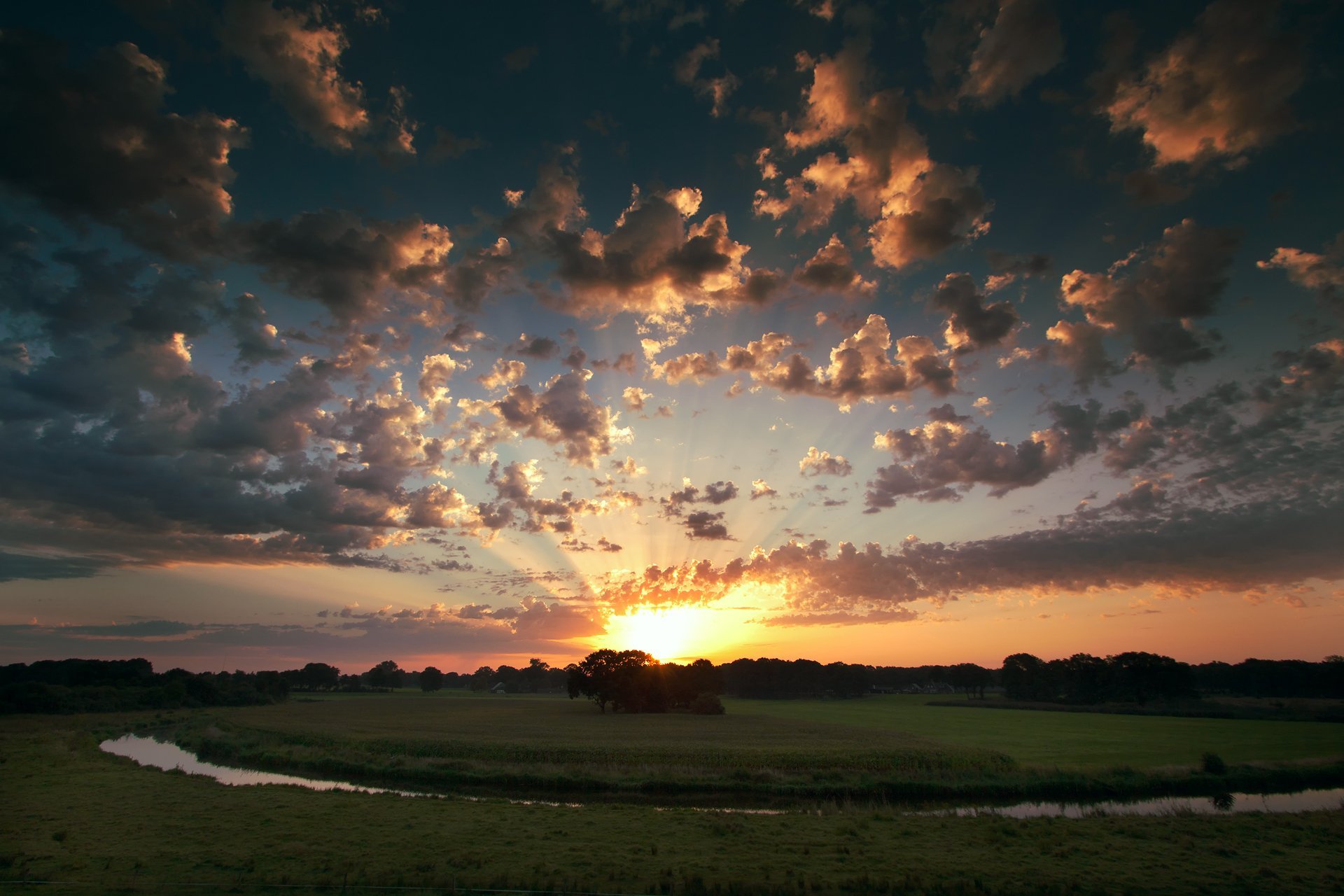Пейзаж с заходящим солнцем