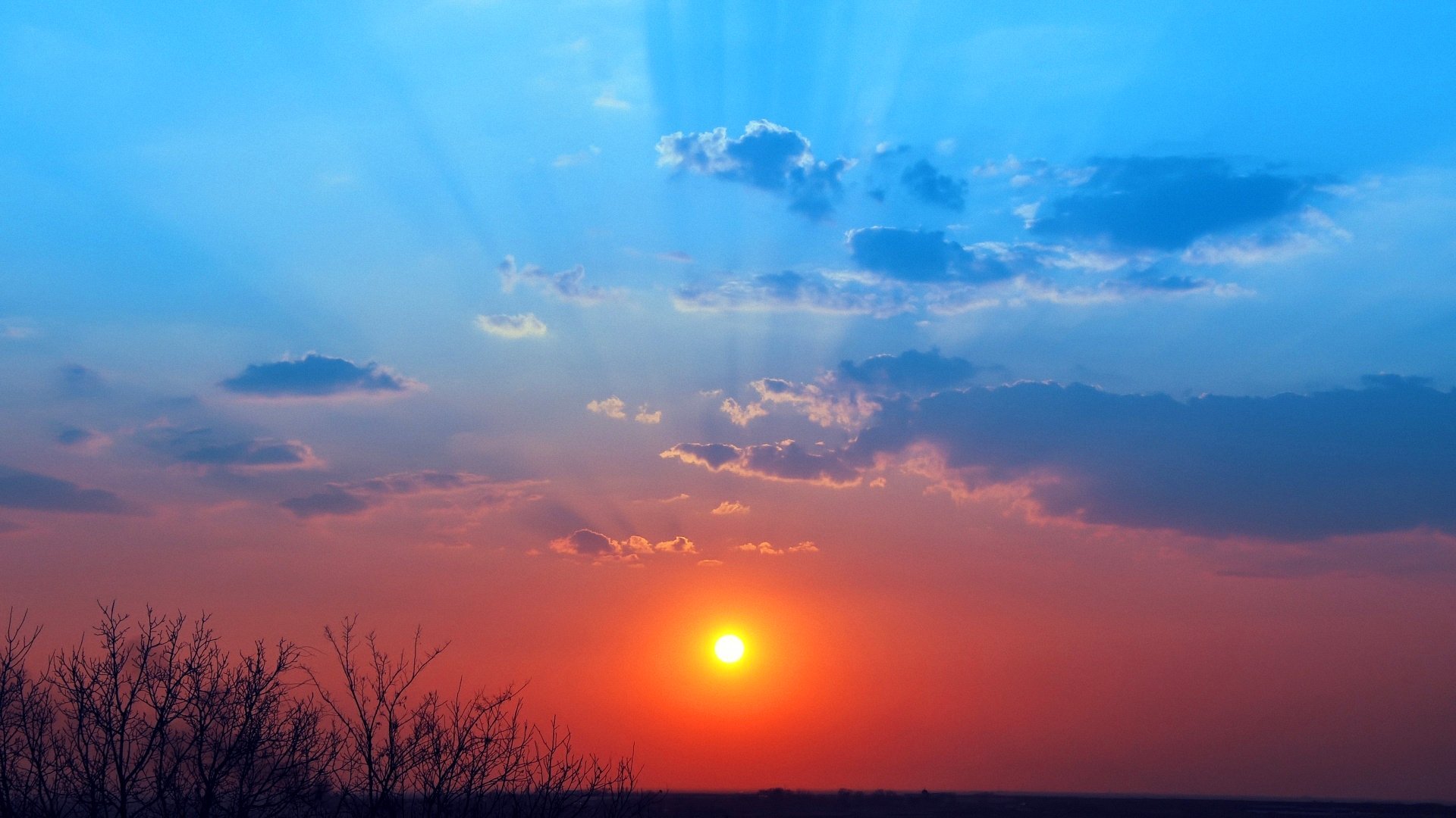 Закатное небо с солнцем