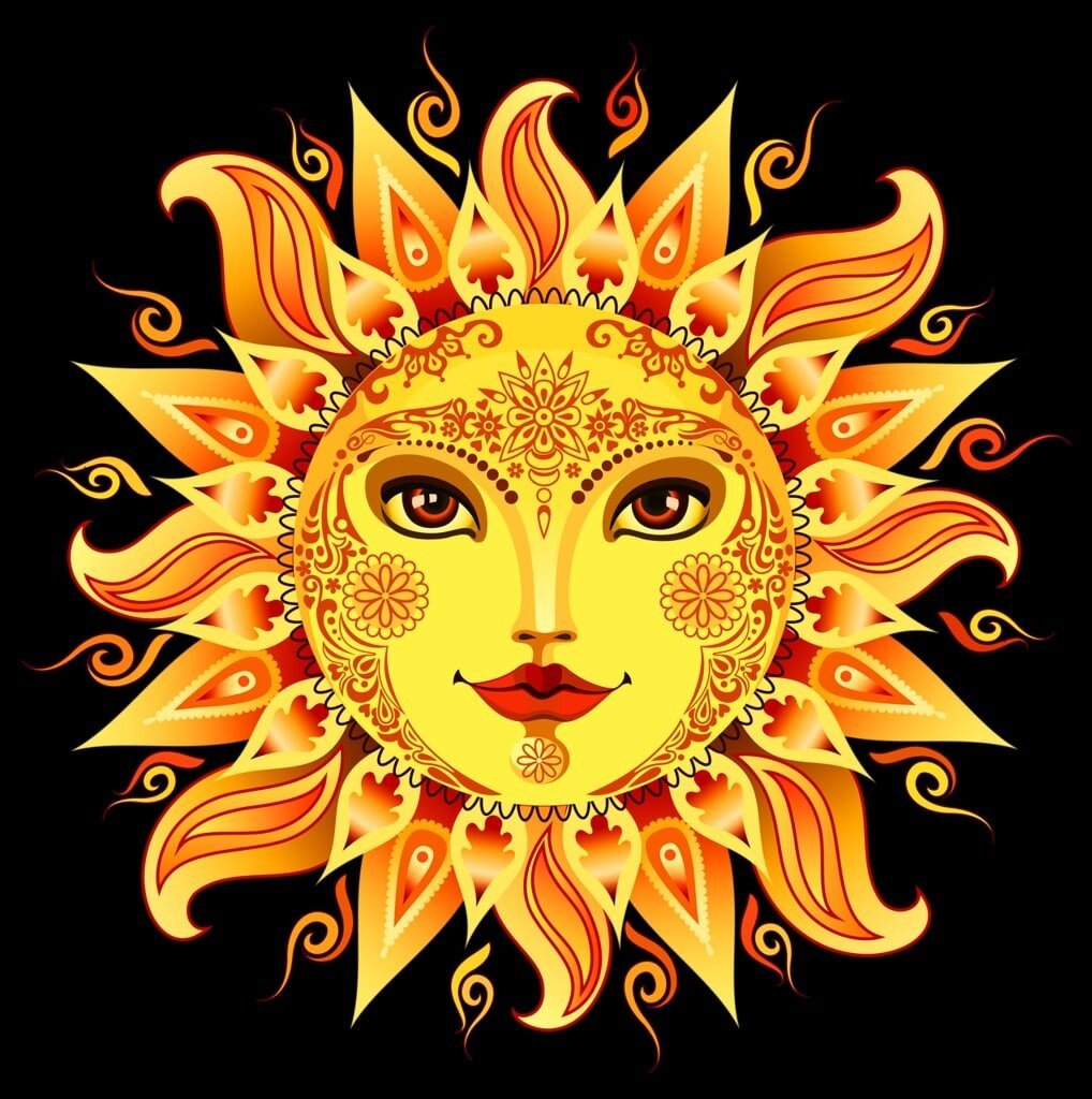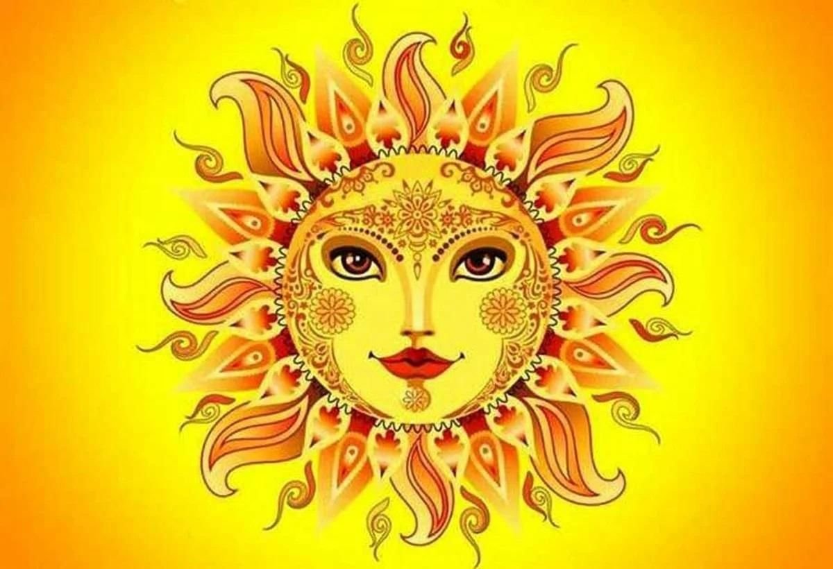 ![Славянское солнце с лицом]()