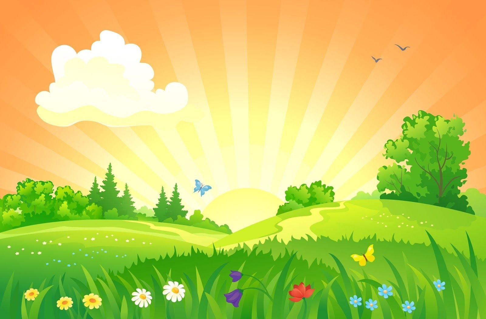 Детский пейзаж с солнцем