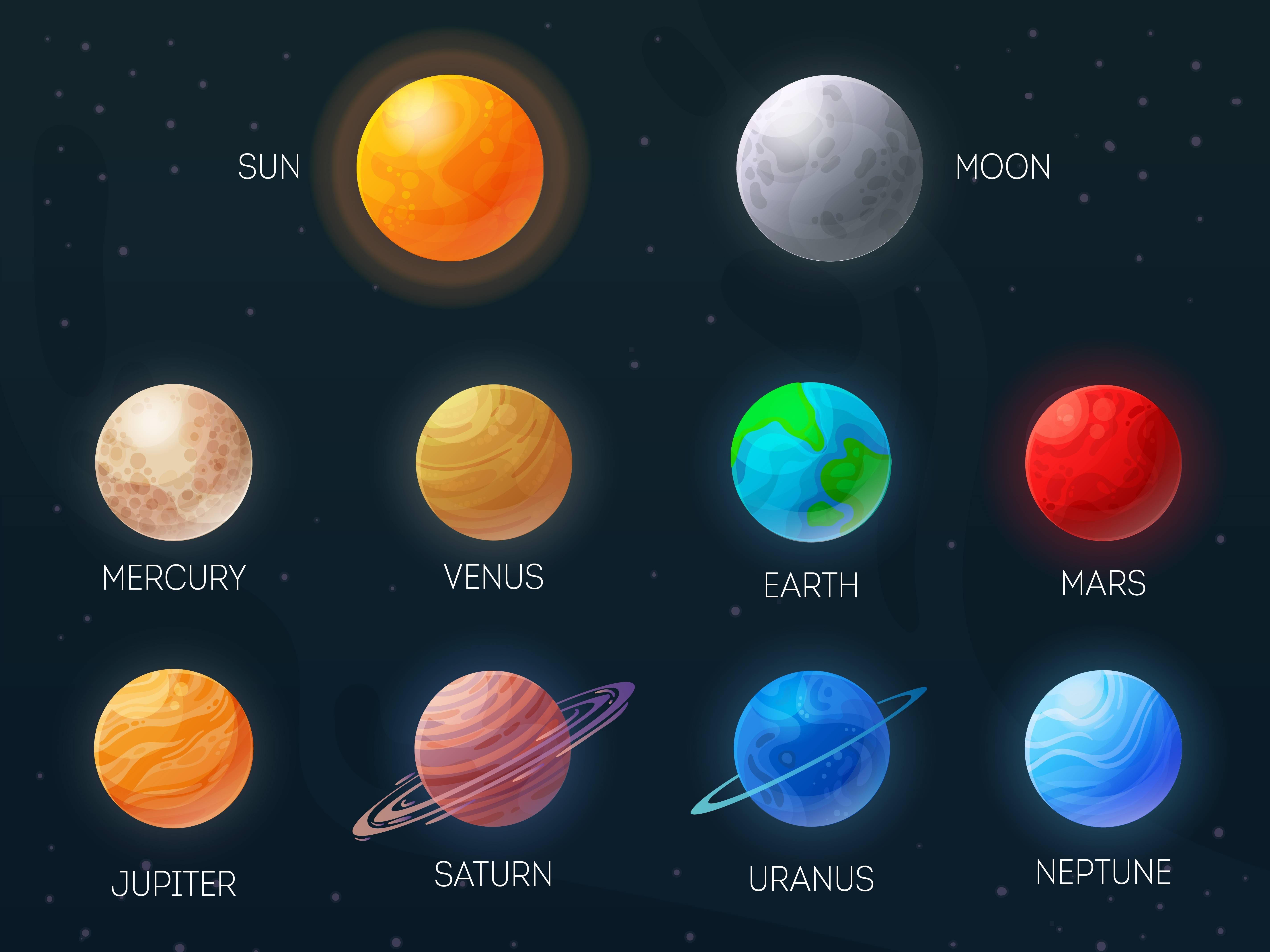 Планеты солнечной системы (Меркурий, Венера, Юпитер, Нептун).