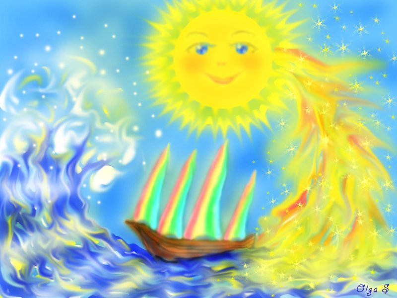 ![Солнце радужные лучи]()