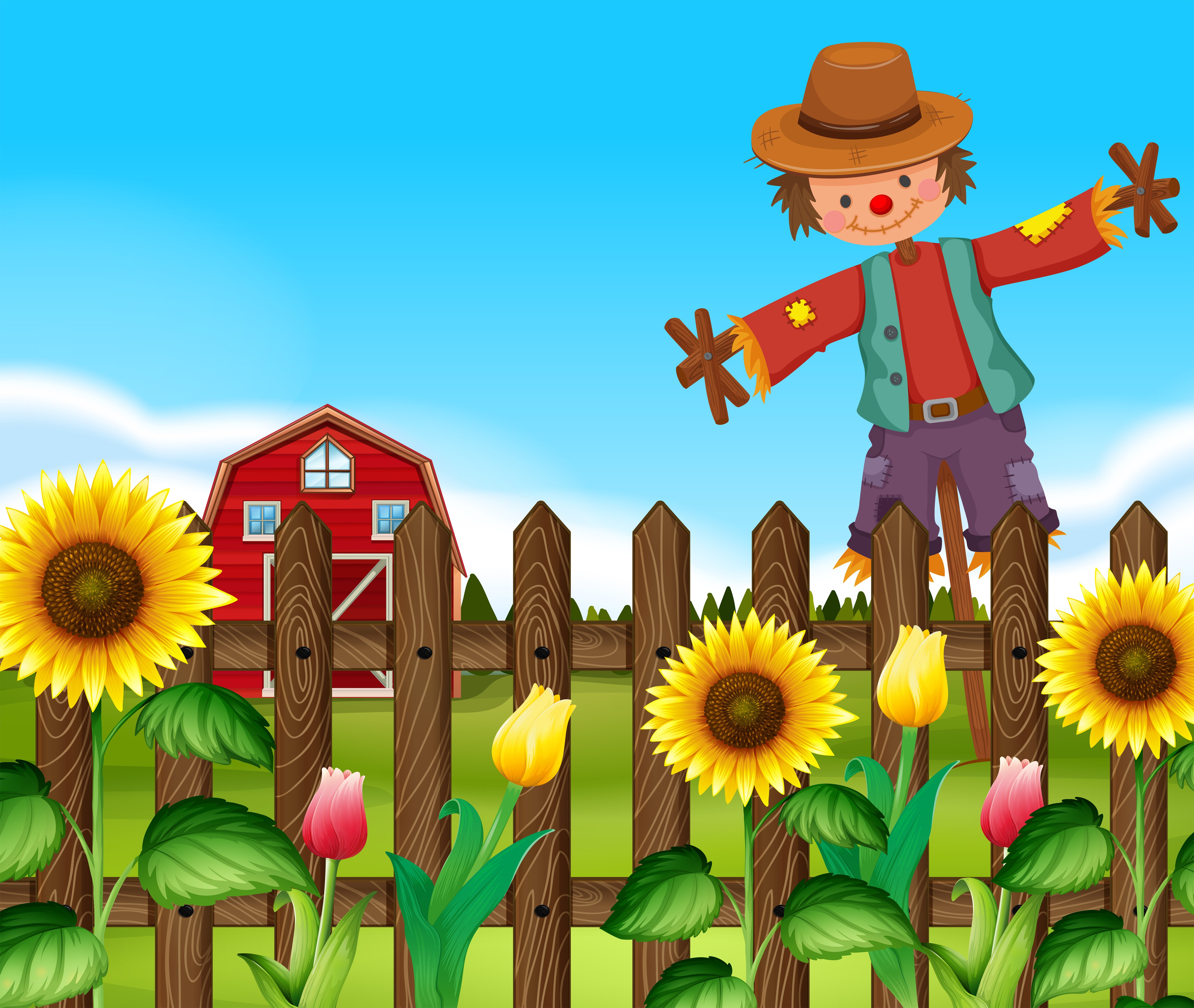 ![Забор с пугалом для детей]()