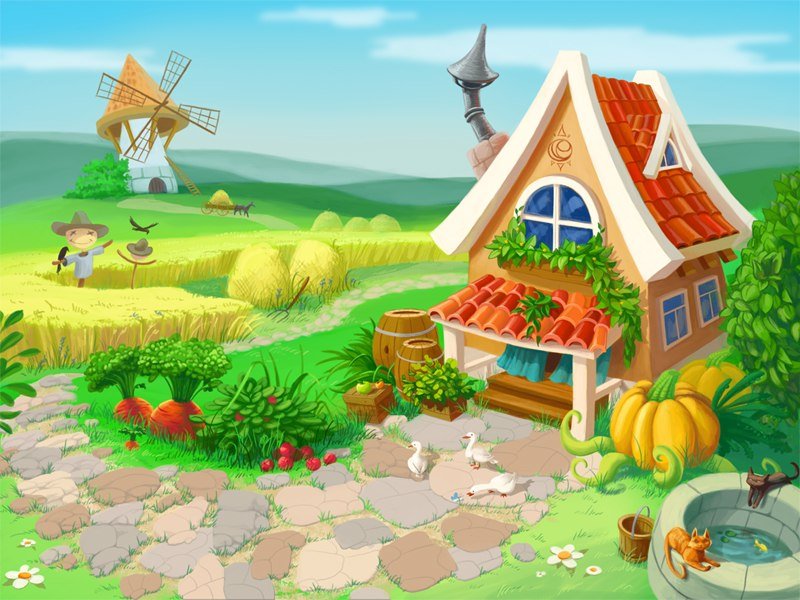 ![Мультяшная деревня]()