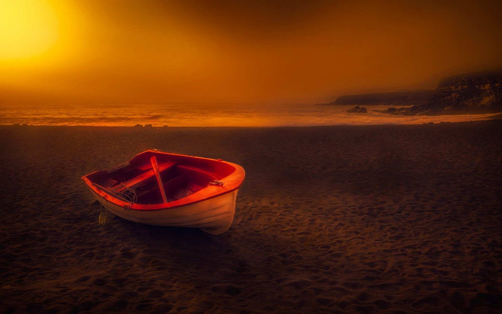 Лодка в море на рассвете