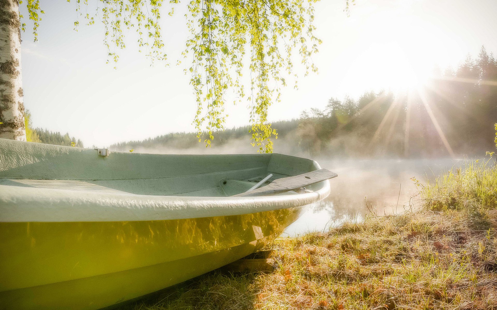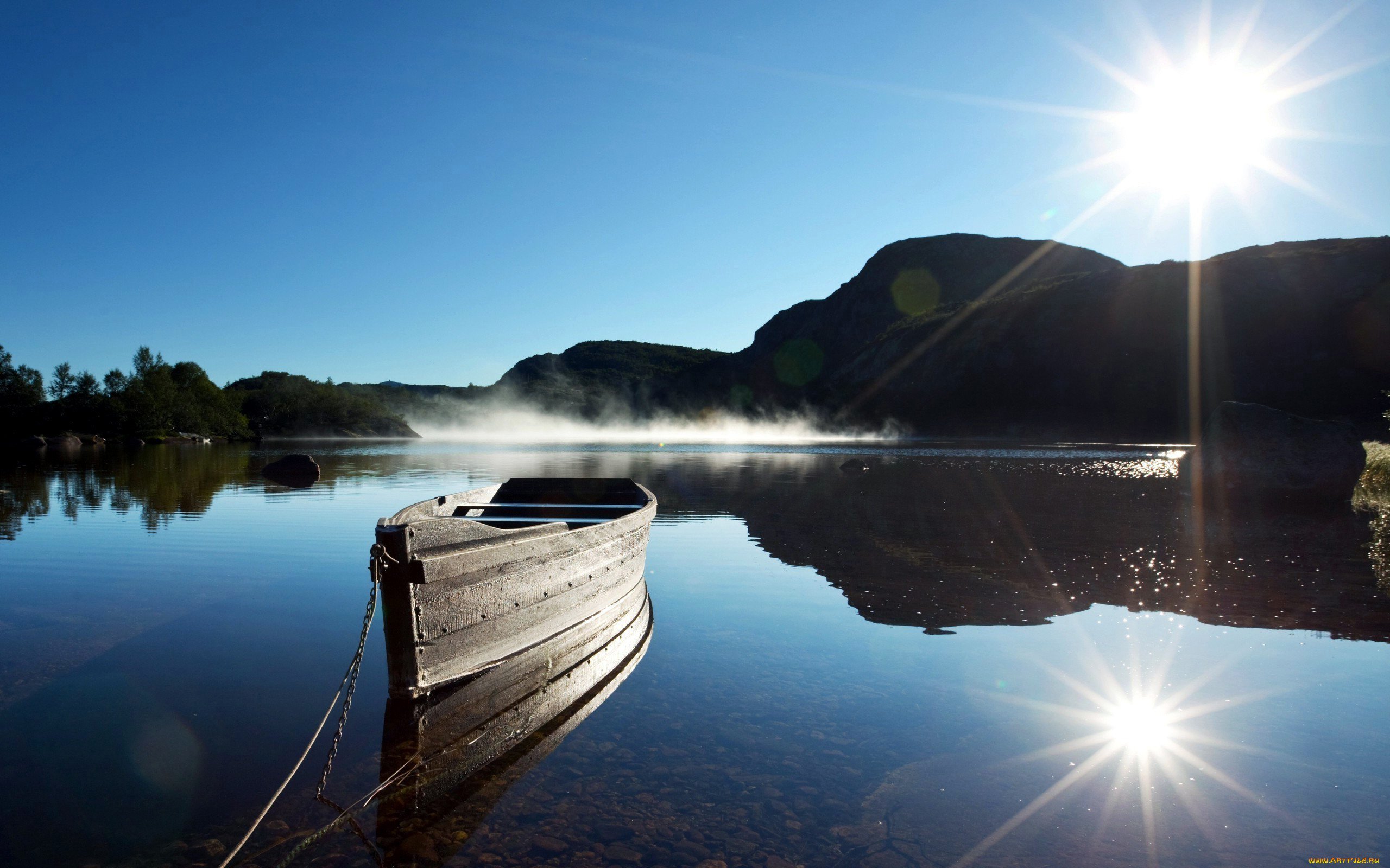 Озеро лодка рассвет