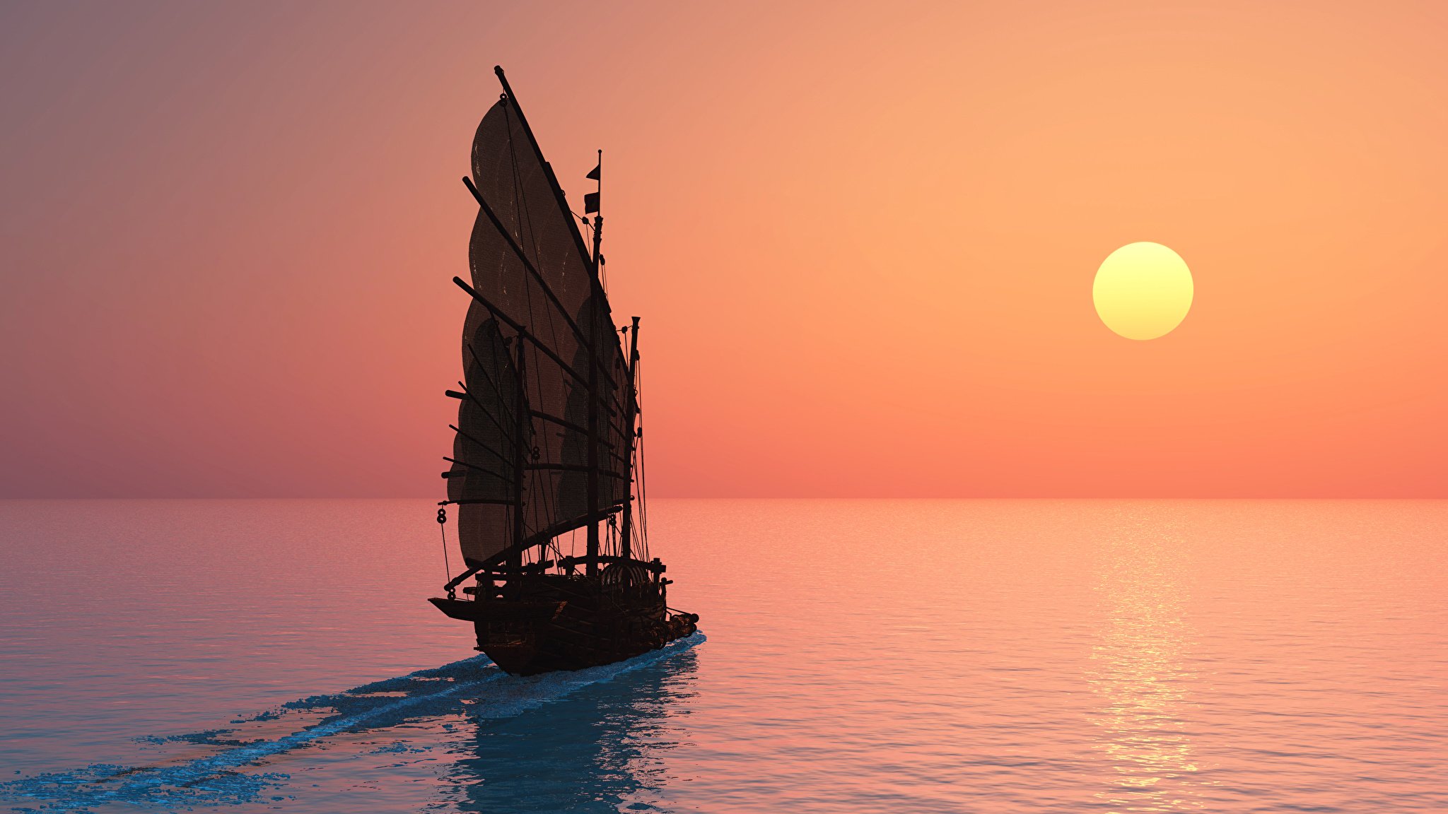 Корабль на закате