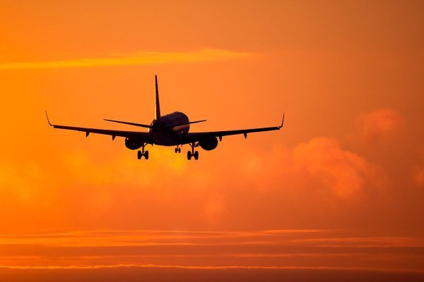 ![Самолет закат город]()