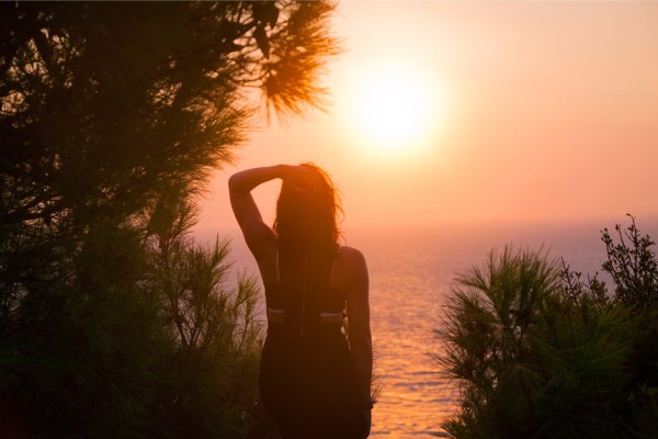 Женщина на закате солнца
