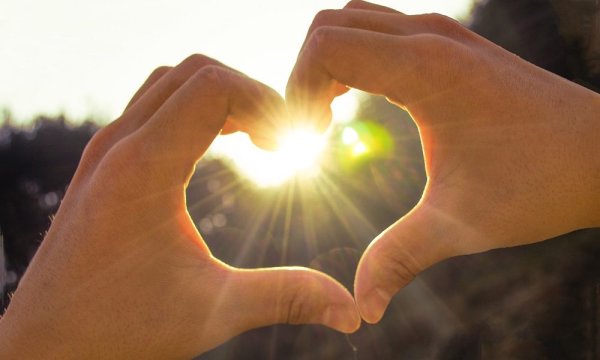 Солнце в сердечке из рук