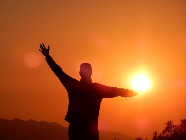 ![Человек на закате солнца]()