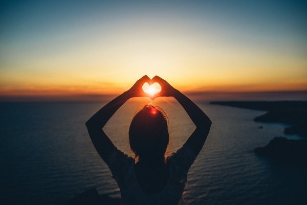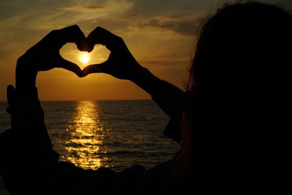 ![Сердце руками на закате]()