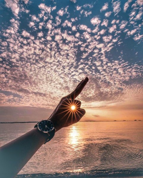 ![Красивый закат с рукой]()