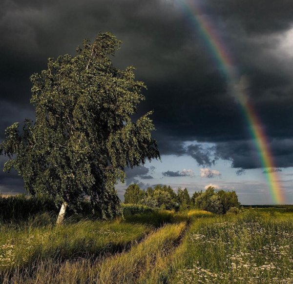 ![Радуга в поле]()