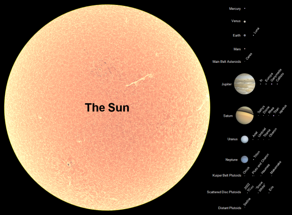 Солнце и планеты в масштабе