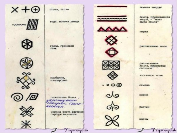 Солярные знаки (солнце, земля, плодородие земли, вода).